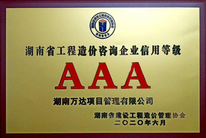 湖南省建设工程造价协会信用评价AAA荣誉
