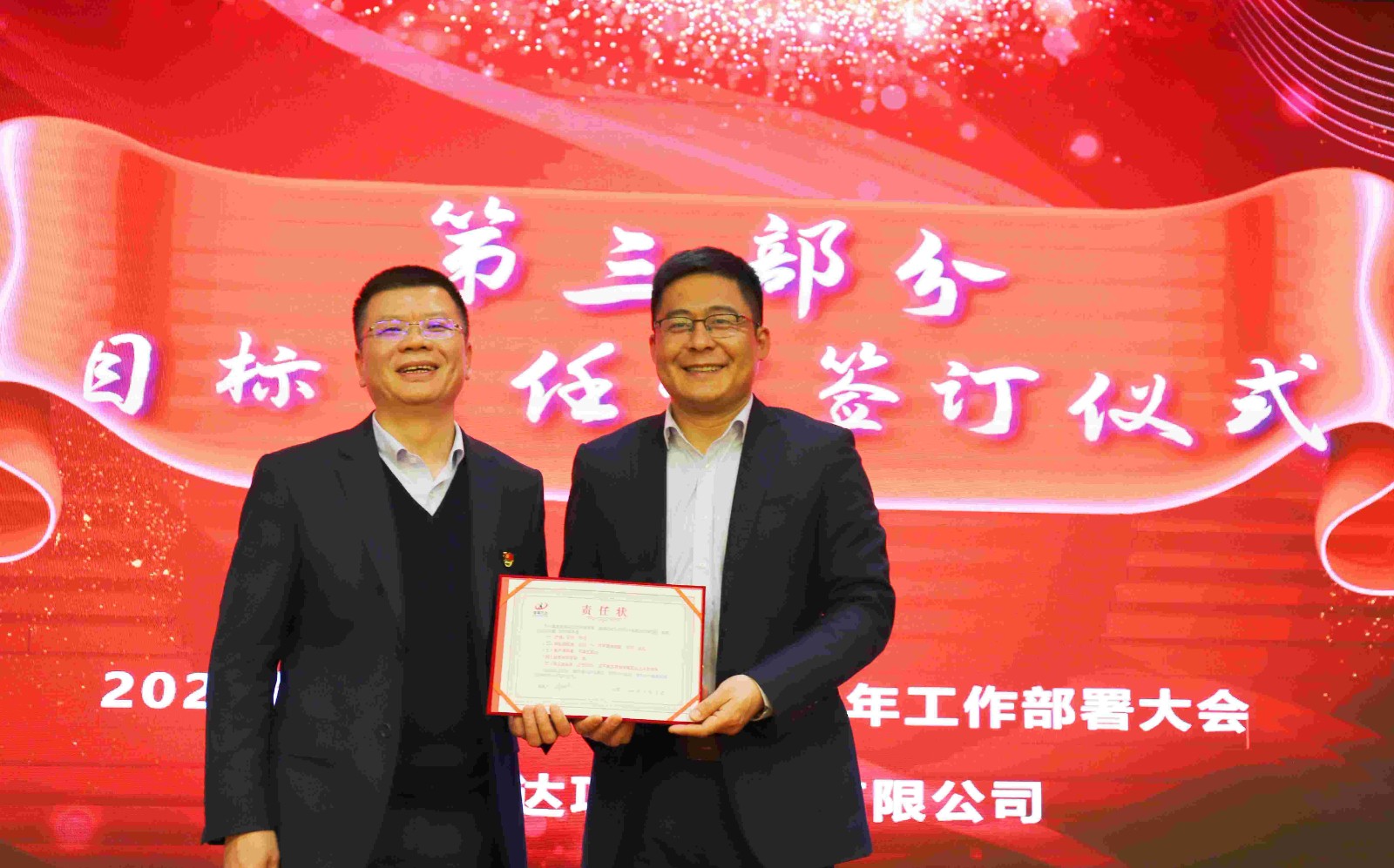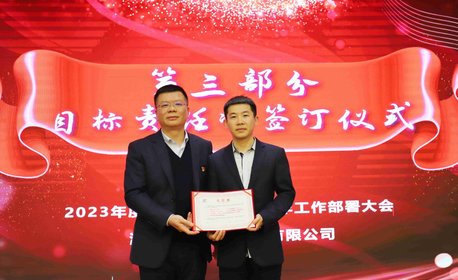 各事业部经理向董事长递交目标责任状
