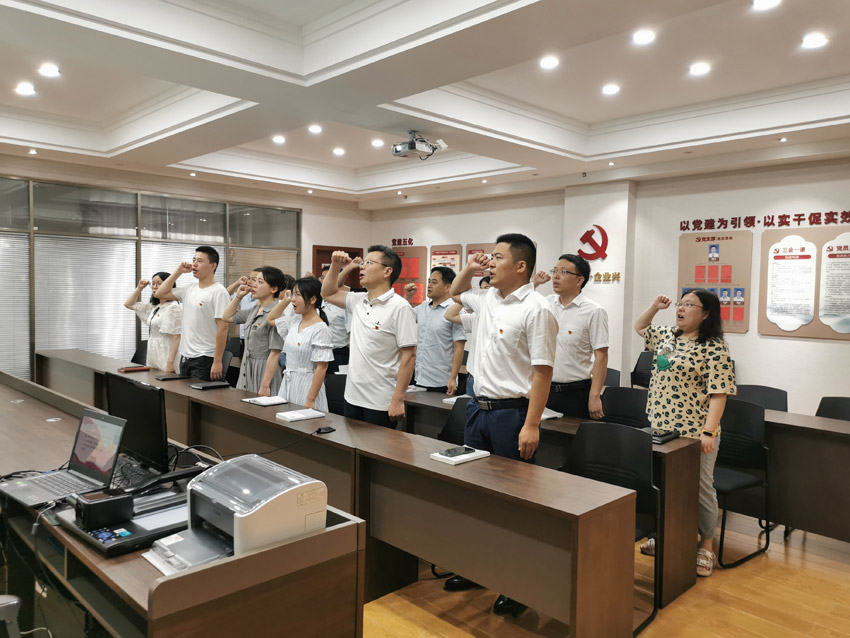 百年征程波澜壮阔,百年大党风华正茂。为热烈庆祝中国共产党百年华诞,7月1日上午7时30分,在党支部书记颜佳鸿同志的带领下,我司全体党员举行了“致敬建党百年,重温入党誓词”党员宣誓仪式。