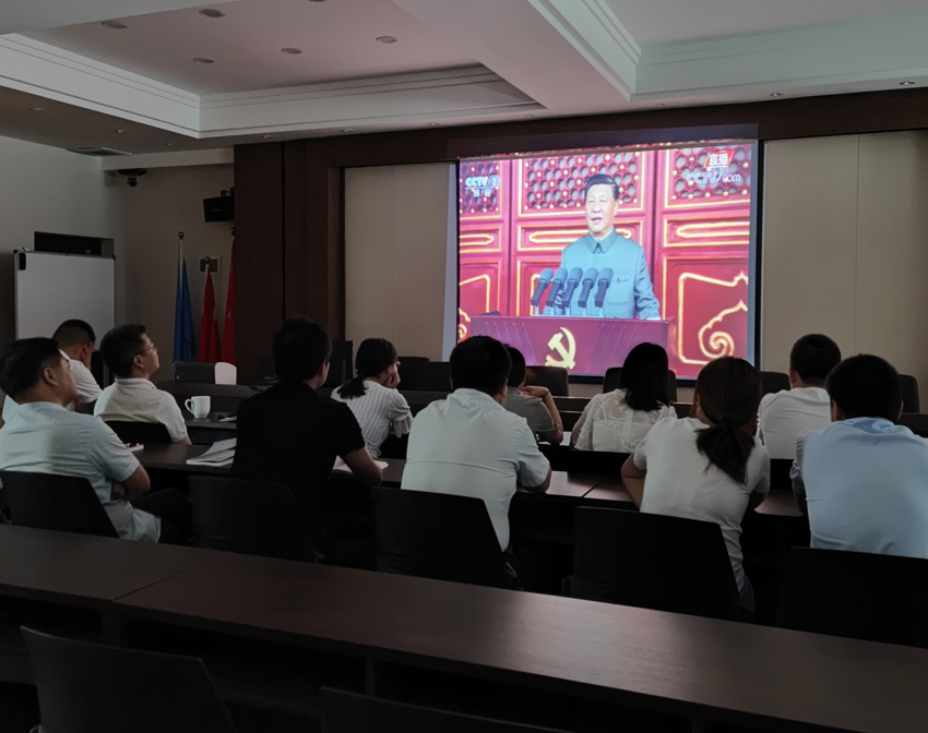 仪式结束后,全体党员及入党积极分子在我司520会议室集中观看了“庆祝中国共产党成立100周年大会”实况。观看现场,大家仔细聆听习近平总书记的重要讲话,感受党的光辉历程和取得的非凡成就。